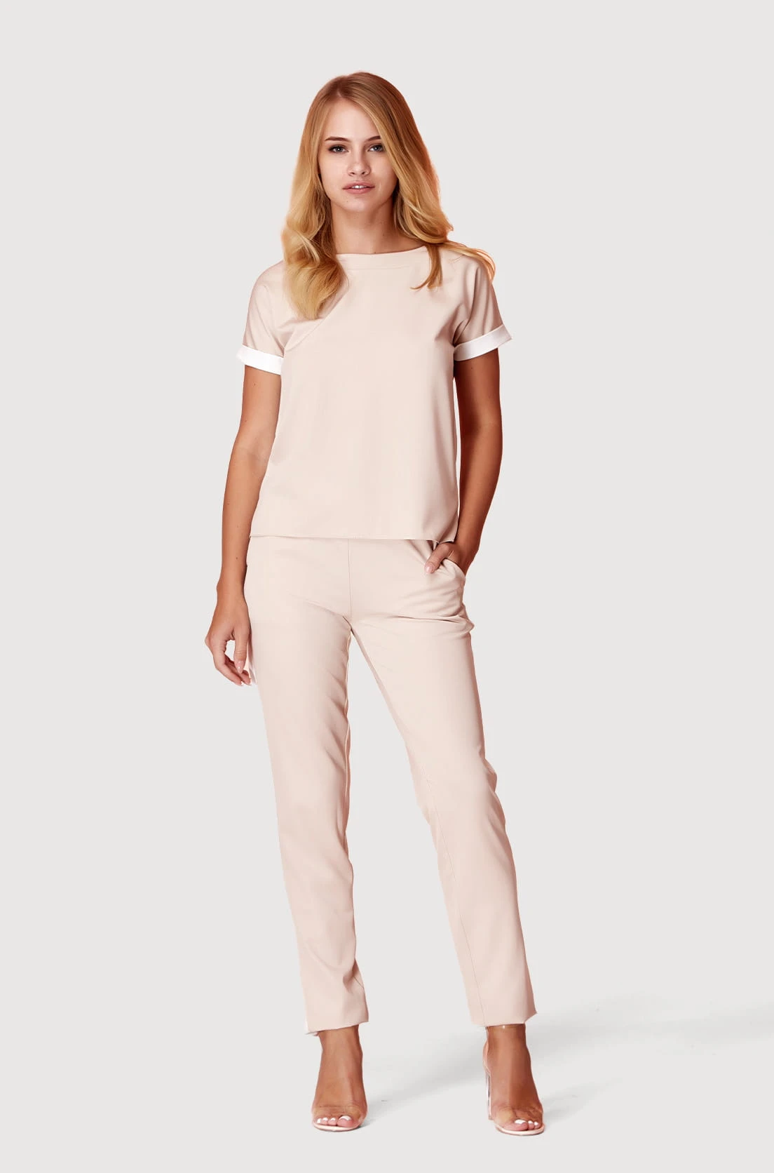 Wykonany z bawełny z dodatkiem elastanu. Dzięki dopasowanemu krojowi ten t-shirt podkreśla sylwetkę, dodając uroku każdej stylizacji. Świetnie komponuje się zarówno z legginsami w tym samym kolorze, co tworzy spójną stylizację, jak i z jeansami czy spódnicą.