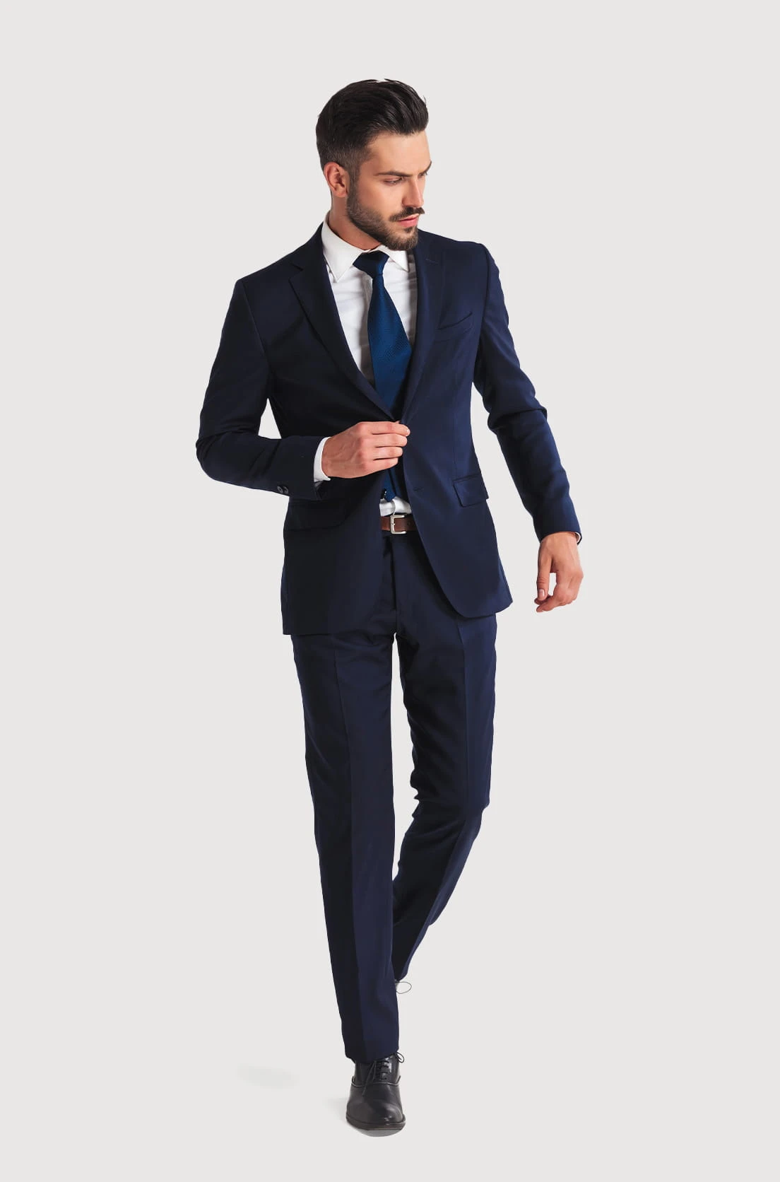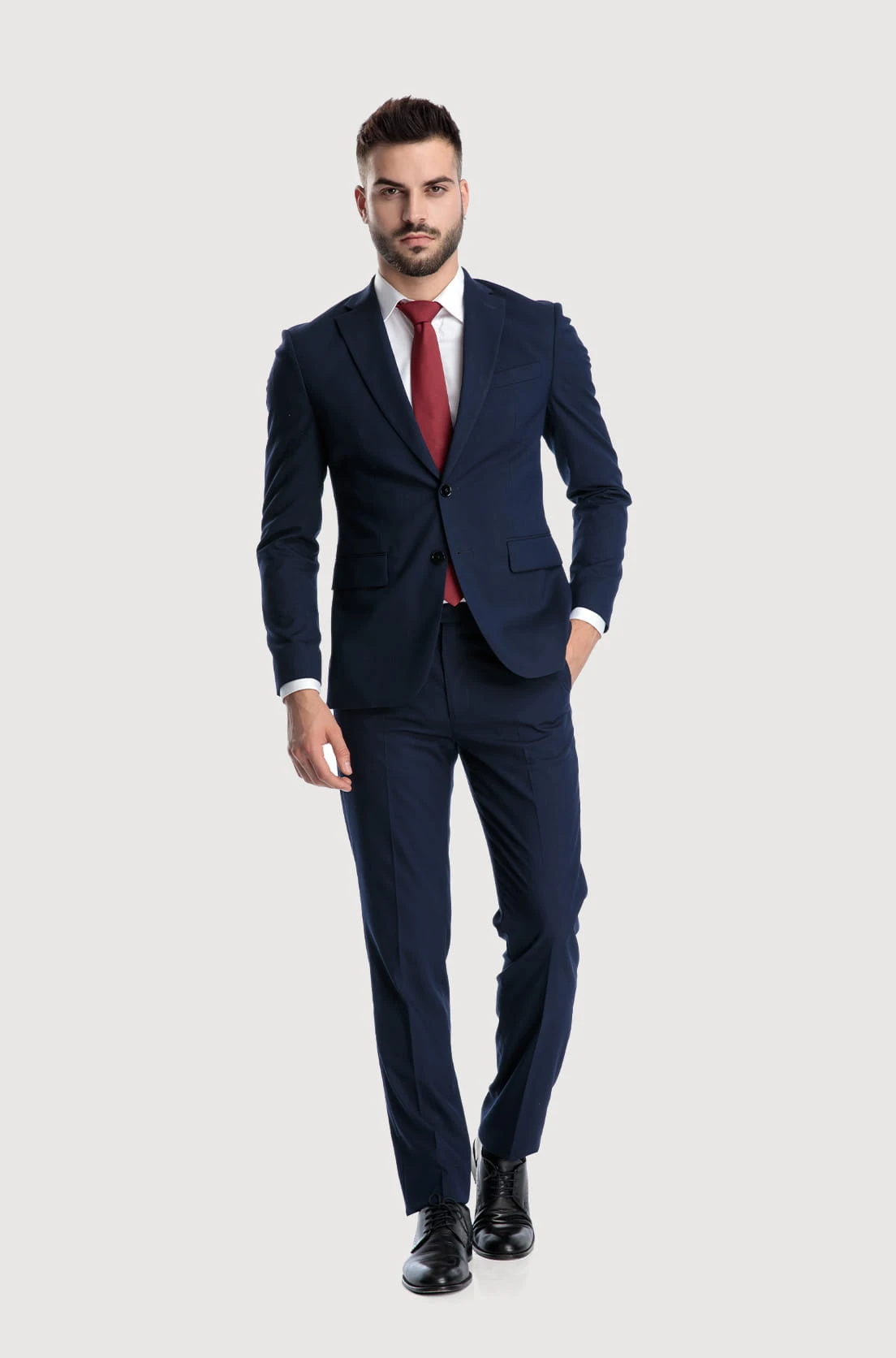 Nasze granatowe spodnie do garnituru to niezbędny element męskiej garderoby. Ich uniwersalny kolor sprawia, że idealnie komponują się z wieloma innymi elementami garderoby. Nasze spodnie, dzięki starannemu krojowi, zapewniają wygodę noszenia i swobodne poruszanie się. Wykonane z wysokiej jakości materiałów (bawełna 100%), spodnie są trwałe i odporne na codzienne użytkowanie. Klasyczny fason oraz staranne wykończenia dodają im elegancji.